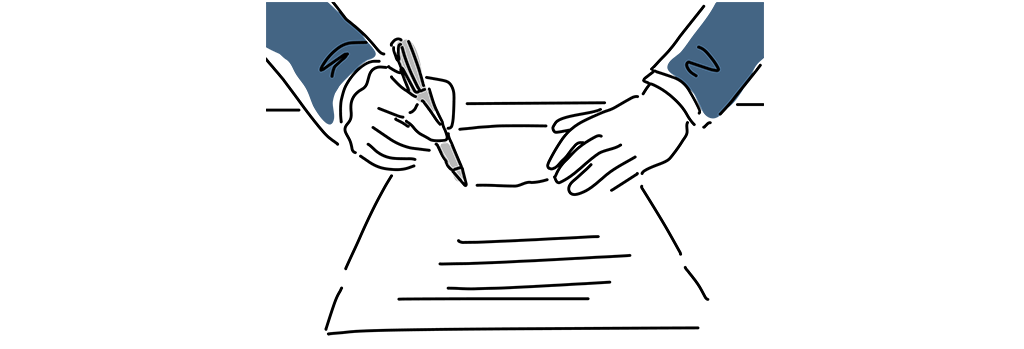 購入希望者から「買付証明書」が届き、価格や引き渡し時期の条件が合致したら売買契約を締結します。この際、買主様から手付金を受け取り、正式に権利譲渡の約束を交わします。